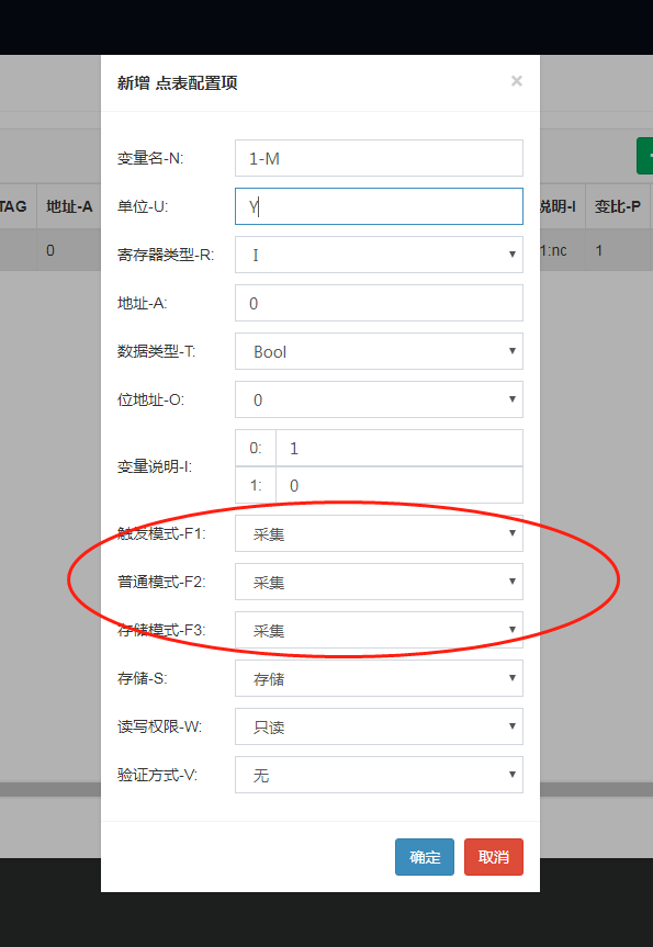 2. 点表中采集模式是否设置都为“不采集”,采集模式选择应是“采集。