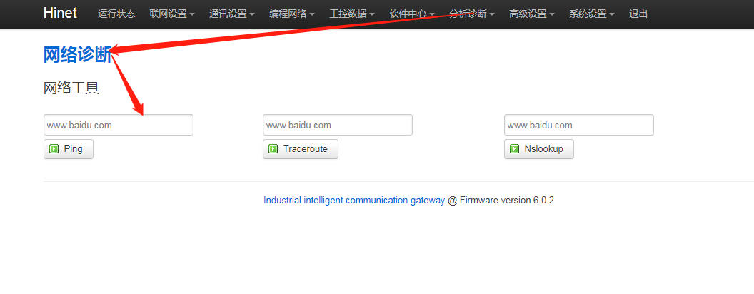 2. 有线网络是否不稳定,进网关后台,点击“分析诊断 - 网络诊断”,ping百度,如果能ping通,则点击“联网设置 - 联网监控” ,将包大小1改为56,再点击【保存应用】”,最后重启网关。